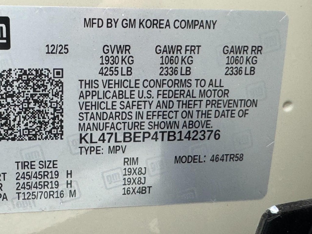 - VIN : KL47LBEP4TB142376