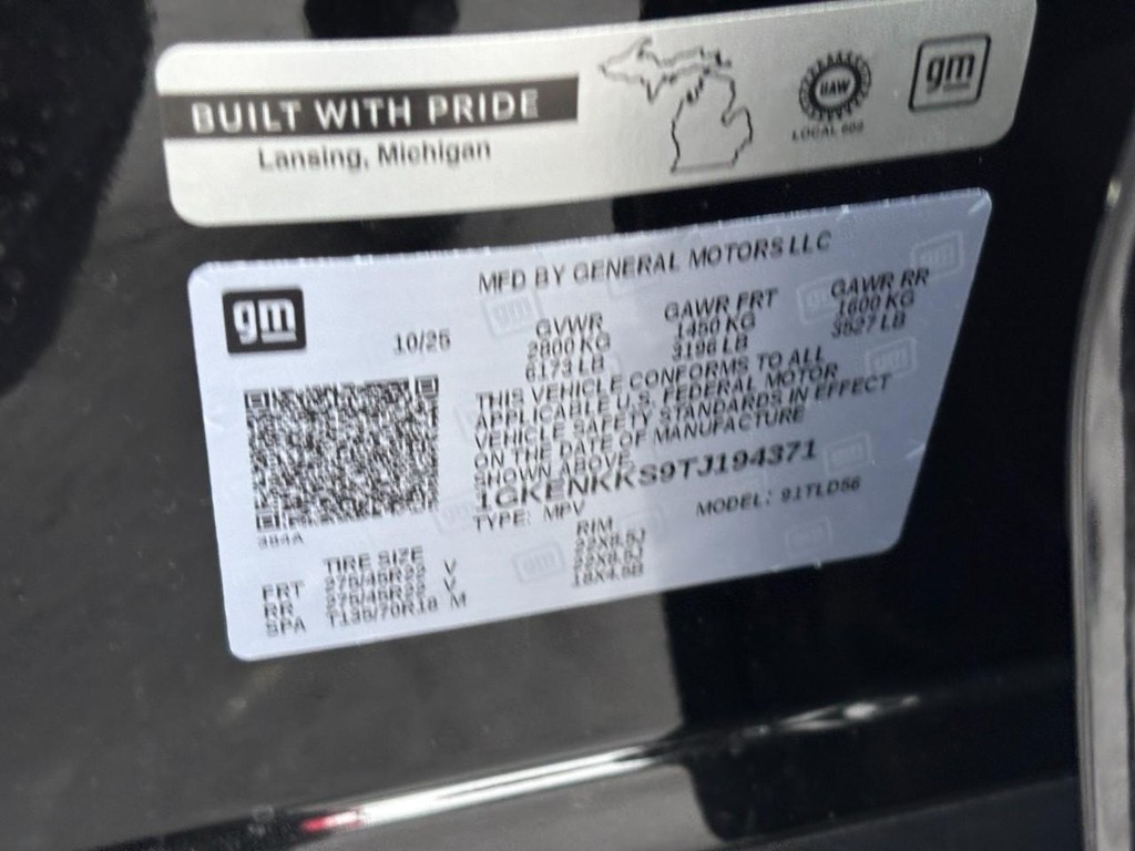 - VIN : 1GKENKKS9TJ194371