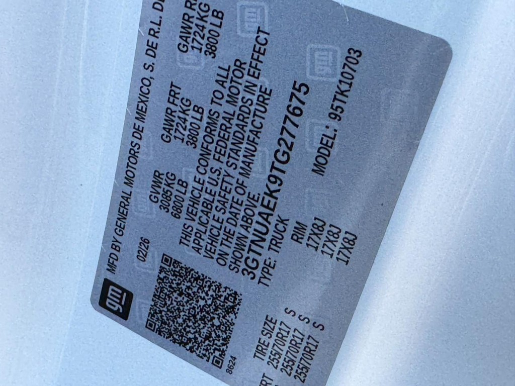 - VIN : 3GTNUAEK9TG277675