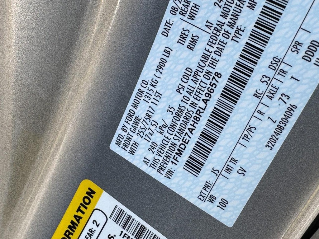 - VIN : 1FMDE7AH8RLA96578
